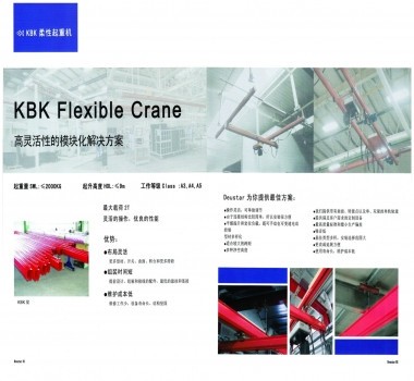 KBK柔性起重機系統(tǒng)應(yīng)用模塊化設(shè)計代替?zhèn)鹘y(tǒng)的整機設(shè)計概念,將起重機功能上基本相同的部件制成具有多種用途,有相同聯(lián)接要素和可互換的標準模塊。根據(jù)需要可組成單梁懸掛起重機、雙梁懸掛起重機、懸臂起重機、輕型門式起重機及堆垛起重機,還能組成大型自動化物料搬運系統(tǒng),安全起重范圍覆蓋125kg-2000kg。