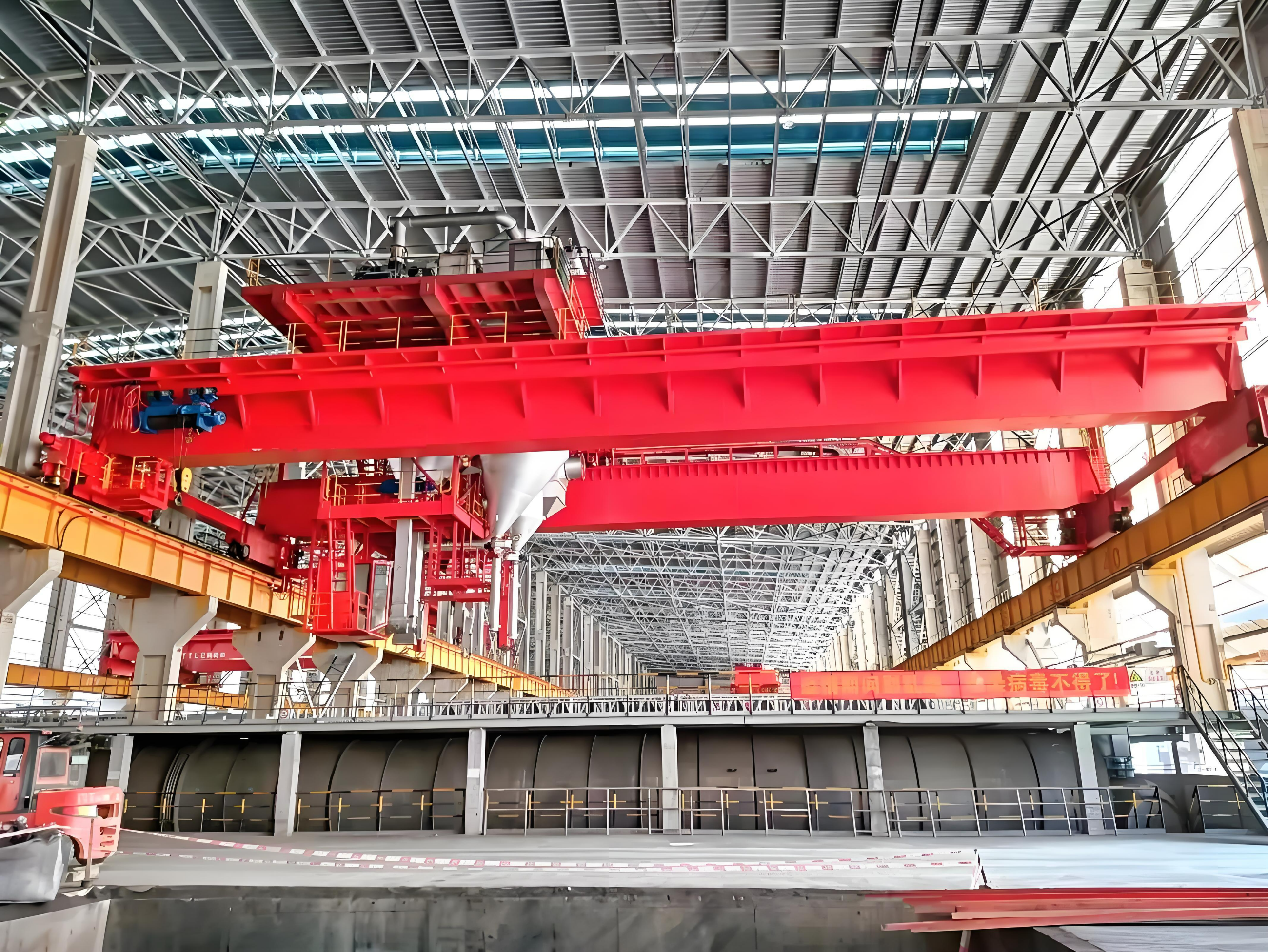 吸卸料天車的主要用途:1、利用卸料管將填充料填入爐坑內; 2 、利用吸料管將高溫填充料從爐坑中吸出,料灰分離; 3 、橋架下有電動葫蘆可輔助吊運。該機全車采用P LC 控制、變頻調速配置,現(xiàn)已廣泛用于全國各大炭素廠,達到國際先進水平,極大的改善了惡劣的工作環(huán)境、減輕了工人的勞動強度和提高工作效率。